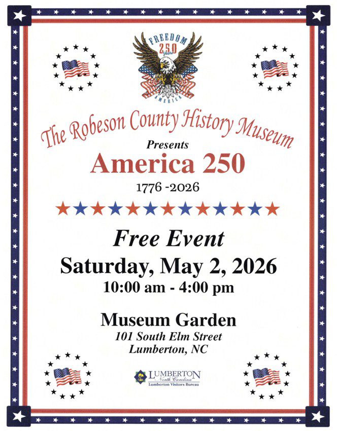 Robeson County History Museum 101 South Elm Street, Lumberton, North CarolinaThe Robeson County History Museum is celebrating Freedom 250. Enjoy entertainment by the Bella Venti Woodwind Quintet playing music themed through the years. Booths with historical items will be available […]