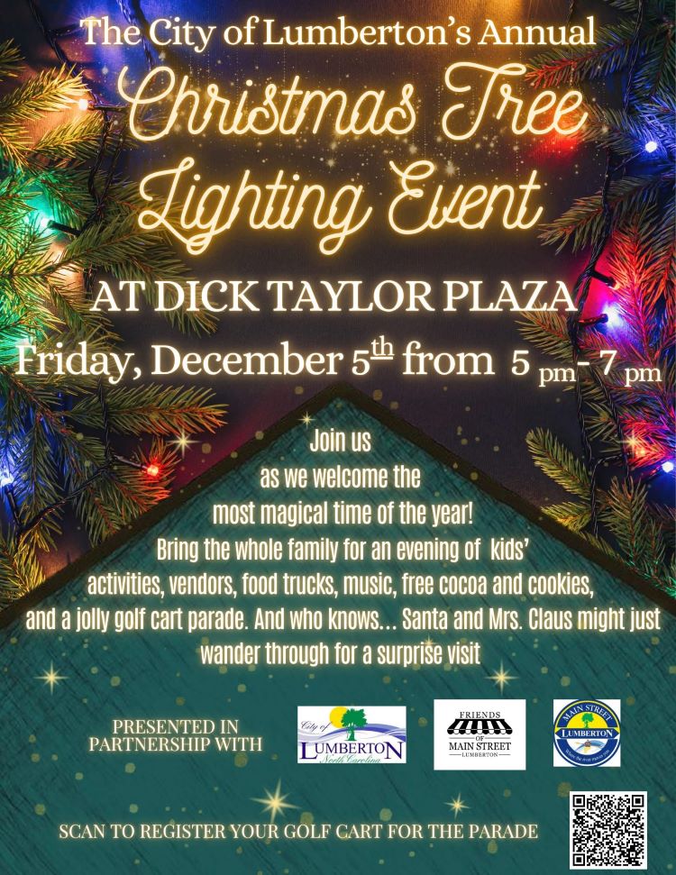 Dick Taylor Plaza (Historic Downtown) 111 E 3rd Street, Lumberton, NC, United StatesJoin us for the lighting of the City's Christmas Tree! Bring the whole family and enjoy free cookies and hot chocolate. Activities are available for the kids and food trucks […]