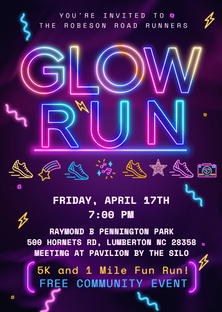 Dr. Raymond B. Pennington Athletic Complex 500 Hornets Road, Lumberton, North CarolinaThe Robeson Road Runners invite you to a free event. The Glow Run is a 5K and a 1 mile fun run. Assemble at the pavilion by the Silo at […]