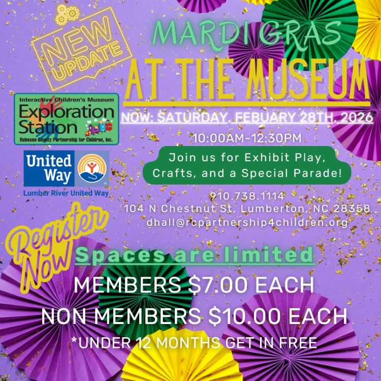 Exploration Station 104 North Chestnut Street, Lumberton, North CarolinaJoin the fun at Exploration Station for Exhibit play, crafts and a special parade. Members fee is $7.00 and non members $10.00. Children under 12 months admitted free. Don't wait! […]