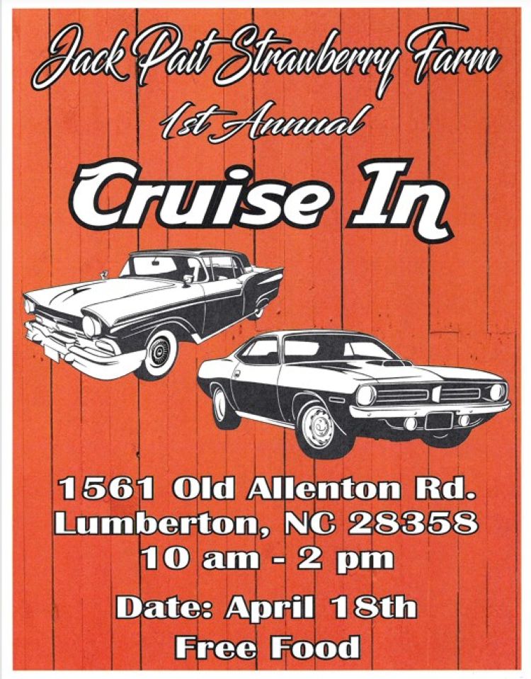 Jack Pait's Strawberry Farm 1561 Old Allenton Road, Lumberton, North CarolinaJack Pait Strawberry farm is hosting its First Annual Cruise In. Antique cars, maybe a tractor or two and free food. Check out this inaugural event. Enjoy the friendly and […]