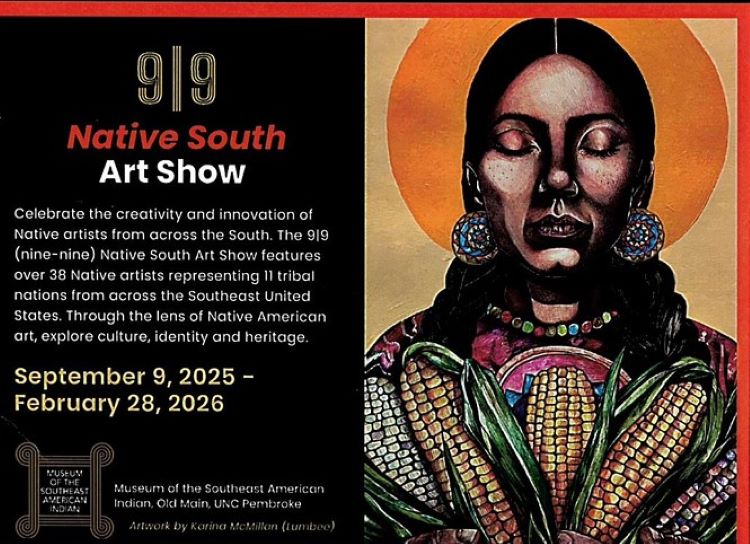 UNC Pembroke 202 Main St, Pembroke, NC, United StatesCelebrate the creativity and innovation of Native arts from across the South. The 9/9 Native South Art show features over 38 Native artists representing 11 tribal nations across the Southeast United States. The exhibition will be on display September 9. 2025 through February 28, 2026. The museum is open Monday - Friday 9:00am - […]