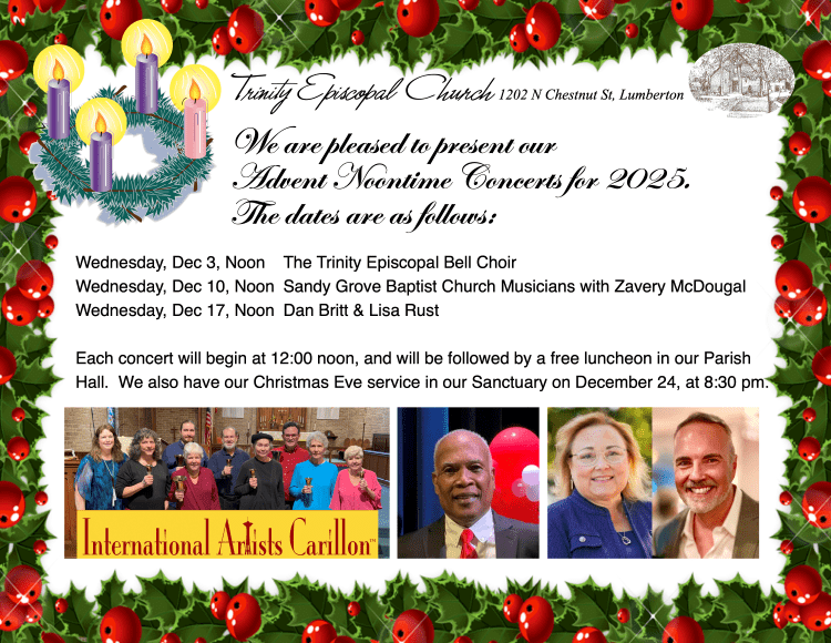 | 3 events, ![]() Santa is visiting at Biggs Park Mall and it's time to whisper Christmas wishes to him. Photo options are available for Christmas sharing and enjoy Holiday Shopping while visiting the mall. ![]() Red Springs Artspace presents “Acute Observations: Expansive Experimental Works Inspired by Water & Sky” by Janette K. Hopper. This solo art exhibition will be on display from November 16 through […] ![]() Purple Door Productions presents "Frozen". The talents of our local community is amazing and at the Purple Door Production Studio, this Disney production is up close and personal. More details to follow. Tickets are $20 for adults, $12/Student - 12-18 years, $7 for 11 years. Use the QR code to connect with purchasing tickets or […] | 2 events, ![]() Celebrate the creativity and innovation of Native arts from across the South. The 9/9 Native South Art show features over 38 Native artists representing 11 tribal nations across the Southeast United States. The exhibition will be on display September 9. 2025 through February 28, 2026. The museum is open Monday - Friday 9:00am - […] ![]() The Horse and Tack Auction is scheduled the 1st Monday night of each month. Mark you calendar for the reoccurring events. All events are held at the Southeastern NC Agricultural Events Center in Robeson County. Used Tack: 3:00pm, New Tack: 5:00pm, Horses: 7:00pm. A veterinarian will be on the premises for Coggins. | 2 events, ![]() Visit the Robeson County Art Gallery and view the current exhibition, "Indigenous Voices", a powerful celebration of Native American artistry. This exhibition brings together talented Native artists showcasing a variety of mediums and traditions. Gallery hours: Tuesdays from 10:00am - 1:00pm, Thursdays from 10:00am - 2:00pm. and other times by appointment. - ![]() A Sip and Paint Party is offered by the Robeson County Public Library, teens and adults only, in the Osterneck Auditorium. Will it be a holiday painting? Enjoy! Drop-in between 5pm - 7pm. | 3 events, ![]() Red Springs Artspace presents “Acute Observations: Expansive Experimental Works Inspired by Water & Sky” by Janette K. Hopper. This solo art exhibition will be on display from November 16 through […] ![]() Trinity Episcopal Church is presenting "The Trinity Episcopal Bell Choir", the first in an Advent series of three concerts. The concert is at 12 noon and will be followed by a free luncheon in the Parish Hall. All are welcomed. The second Advent Concert features Sandy Grove Baptist Church Musicians with Zavery McDougal - […] ![]() Christmastime is here and Santa has arrived to check his list twice, so we hope you have been NICE! Whisper your wishes to him for a great Holiday Season. Enjoy […] | 4 events, ![]() Purple Door Productions presents "Frozen". The talents of our local community is amazing and at the Purple Door Production Studio, this Disney production is up close and personal. More details […] ![]() Christmastime is here and Santa has arrived to check his list twice, so we hope you have been NICE! Whisper your wishes to him for a great Holiday Season. Enjoy […] ![]() The Robeson Art Guild is presenting an opening reception for the Members Holiday Choice Exhibition. Each member selected their choice artwork for the exhibition. Additionally, there will be a People's […] | 8 events, ![]() SAVE THE DATES!!! More information to follow. Come out and support your favorite cowboy or cowgirl. ![]() Christmastime is here and Santa has arrived to check his list twice, so we hope you have been NICE! Whisper your wishes to him for a great Holiday Season. Enjoy […] - ![]() Join us for the lighting of the City's Christmas Tree! Bring the whole family and enjoy free cookies and hot chocolate. Activities are available for the kids and food trucks are on site for special snacks! Happy Holidays to ALL! | 8 events, ![]() SAVE THE DATES!!! More information to follow. Come out and support your favorite cowboy or cowgirl. - ![]() The O. P. Owens Agriculture Center is opening it doors for a Holiday Festival. Shop local with local vendors presenting art, crafts, fresh local produce, protein, and value-added products. Bring […] - ![]() Christmas at the Greenhouse is a memorable place to be! Christmas trees! Wreaths! Bows! Food! Photo ops with Santa! Face painting! The Grinch is there riding around on a barrel […] |